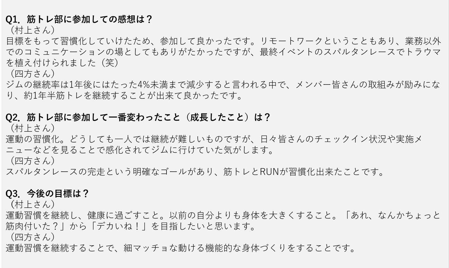 ※筋トレ部メンバーの村上さんと四方さんに聞いてみました
