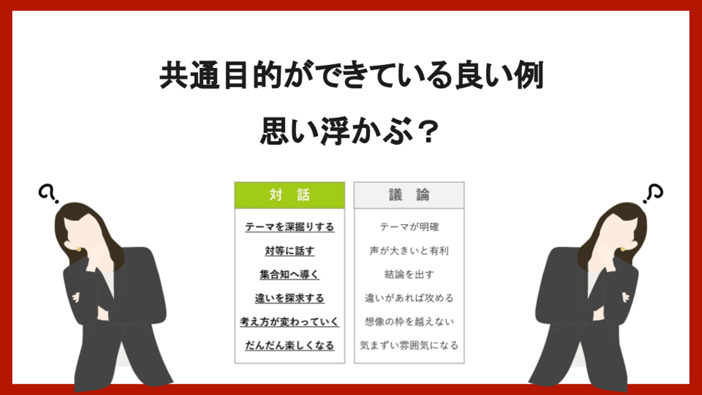 ダイアログ:相手の話に正解/不正解はなく、相手がなぜそう思うのかを深掘りすることを目的としている