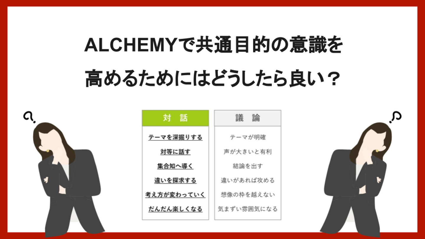 ALCHEMYは、組織力を高め、会社そして社員がより良い想いをするために、様々な施策を行なっております。そのうちの一つがこのダイアログです。