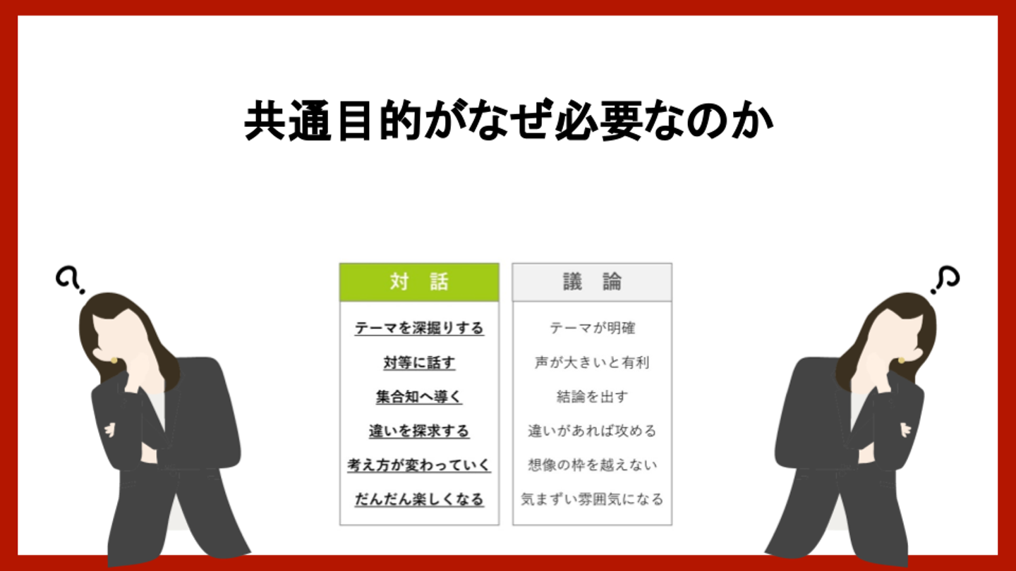 ファシリテーター:じゃあIさん、なぜ共通目的って必要だと思います?
