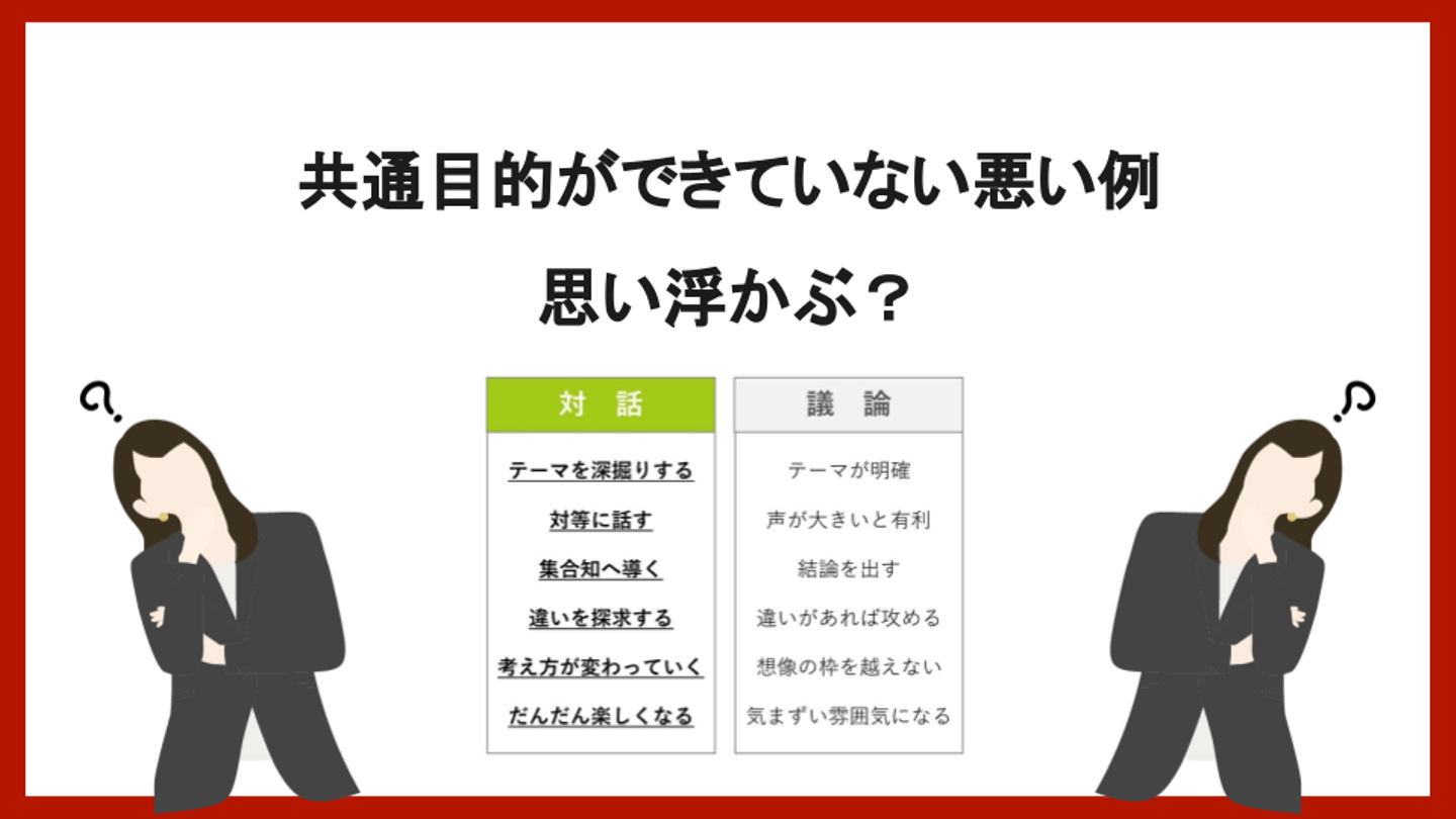 さて、共通目的については何となく分かったかと思うので、そろそろ共通目的をテーマにしたダイアログの様子をお届けいたします。