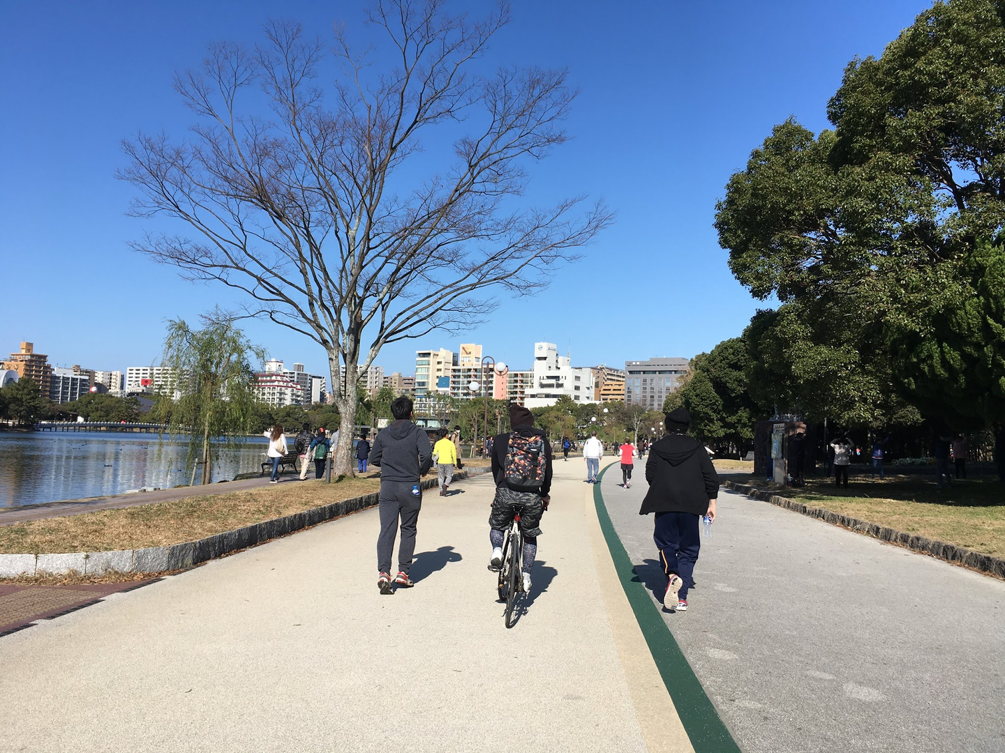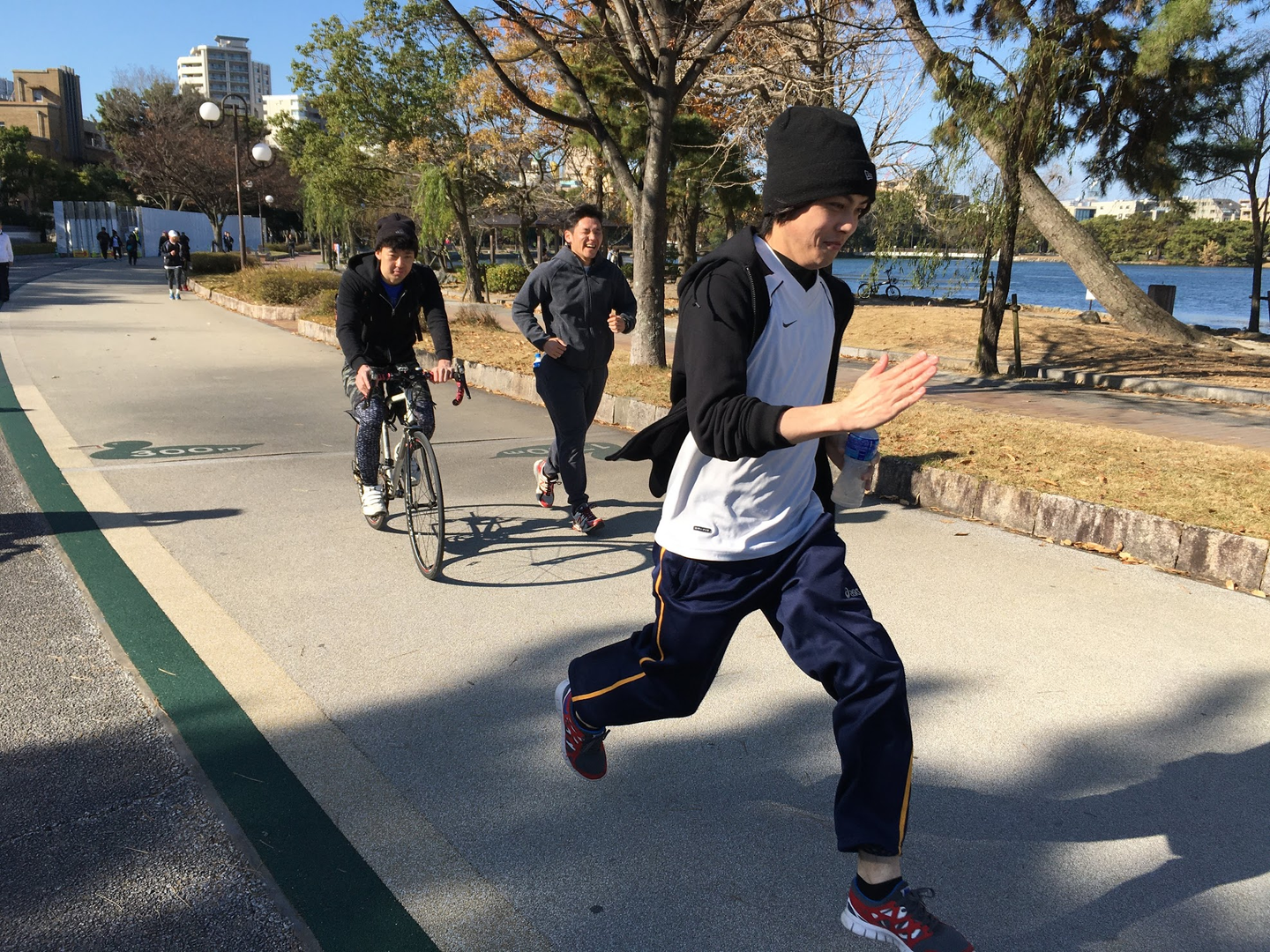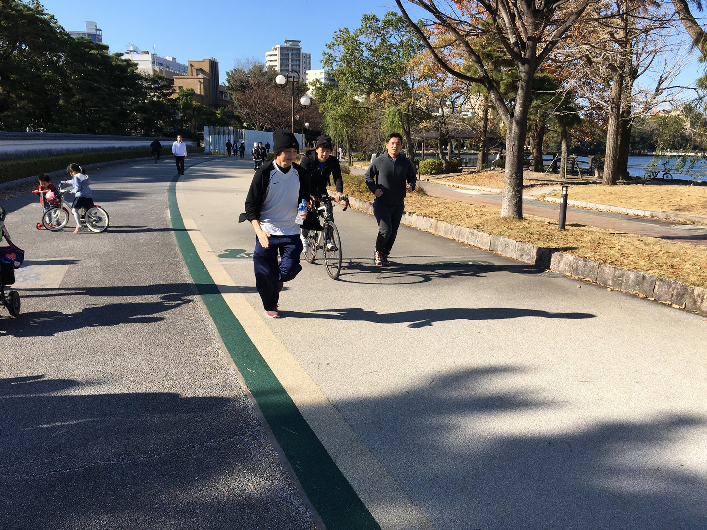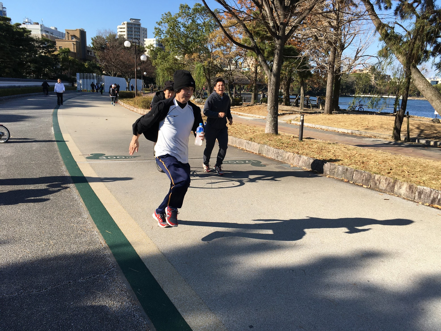 はい。ALHの天神オフィスから地下鉄で2駅のところにある大濠公園に集まり、走ります。