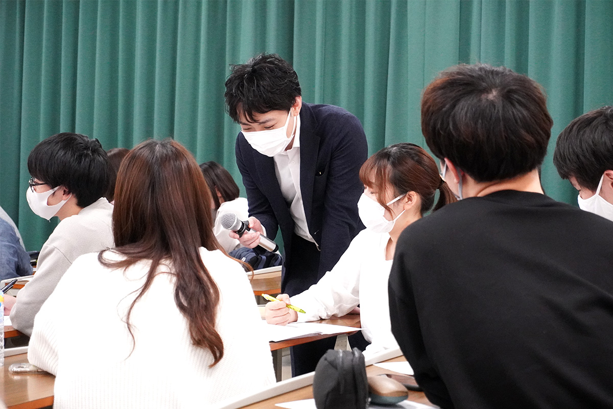 授業では、講義以外にワークショップの時間も設けられています。学生たちは『福井を盛り上げるための事業』をそれぞれ考え、チームに分かれて意見を出し合います。