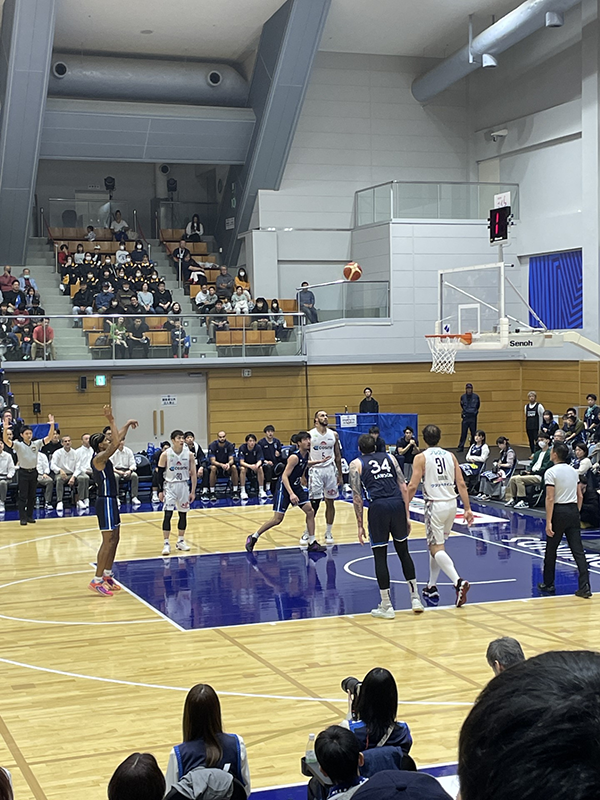 プロバスケの試合を見に行ったのは初めてだったのですが、試合中も常にDJがBGMを流していました。攻守交替のタイミングでBGMも切り替わり、それにサポーターたちの応援も呼応して、会場の一体感の凄さに驚きました。