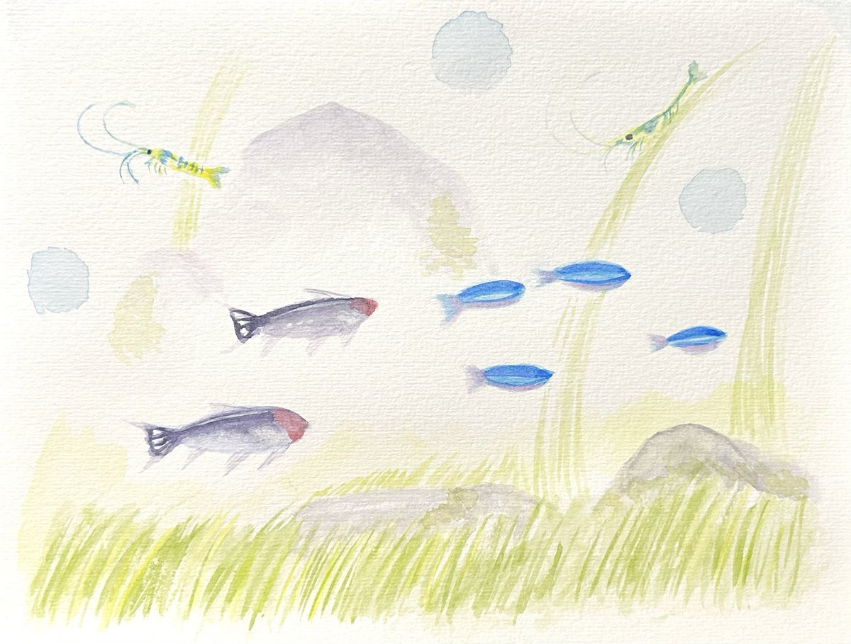 自宅の熱帯魚のスケッチ。餌の食べ過ぎで少しふくよかに…(笑)。