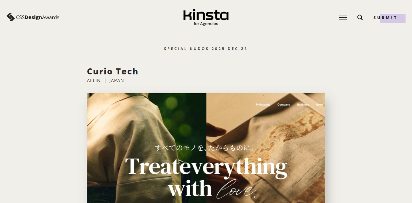 受賞ページはこちら▶https://www.cssdesignawards.com/sites/curio-tech/48643/