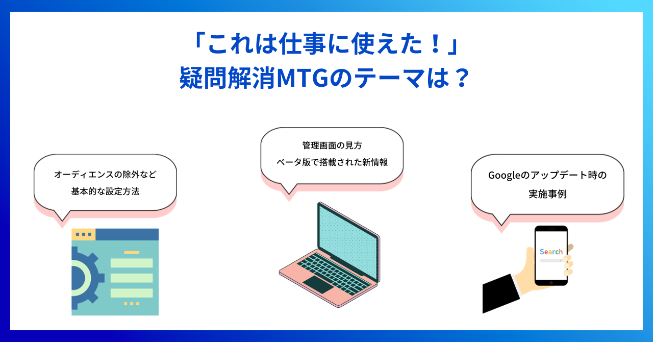 疑問解消MTGは、広告運用コンサルタントとして豊富な経験を持つ藤野さんの「もっと気軽に質問できる場を作りたい」という想いから生まれました。