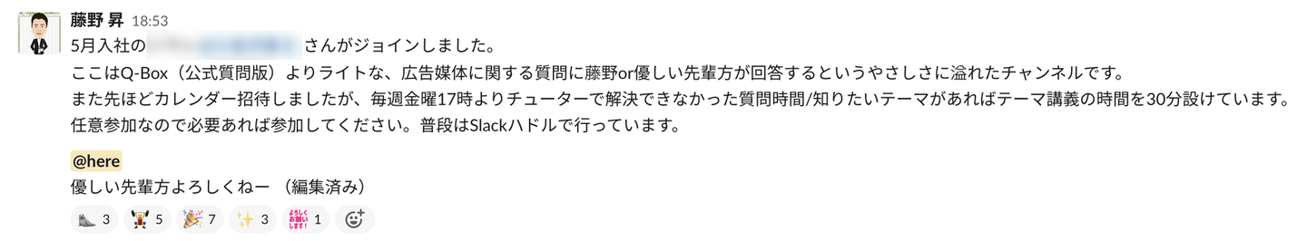 一方、Slack形式の特徴は「いつでも聞けて、誰でも答えられること」。日々の業務の中で疑問に思ったことをタイムリーに質問でき、主催者の藤野さん以外でも「知っている」ことであれば、誰でもアウトプットが可能です。