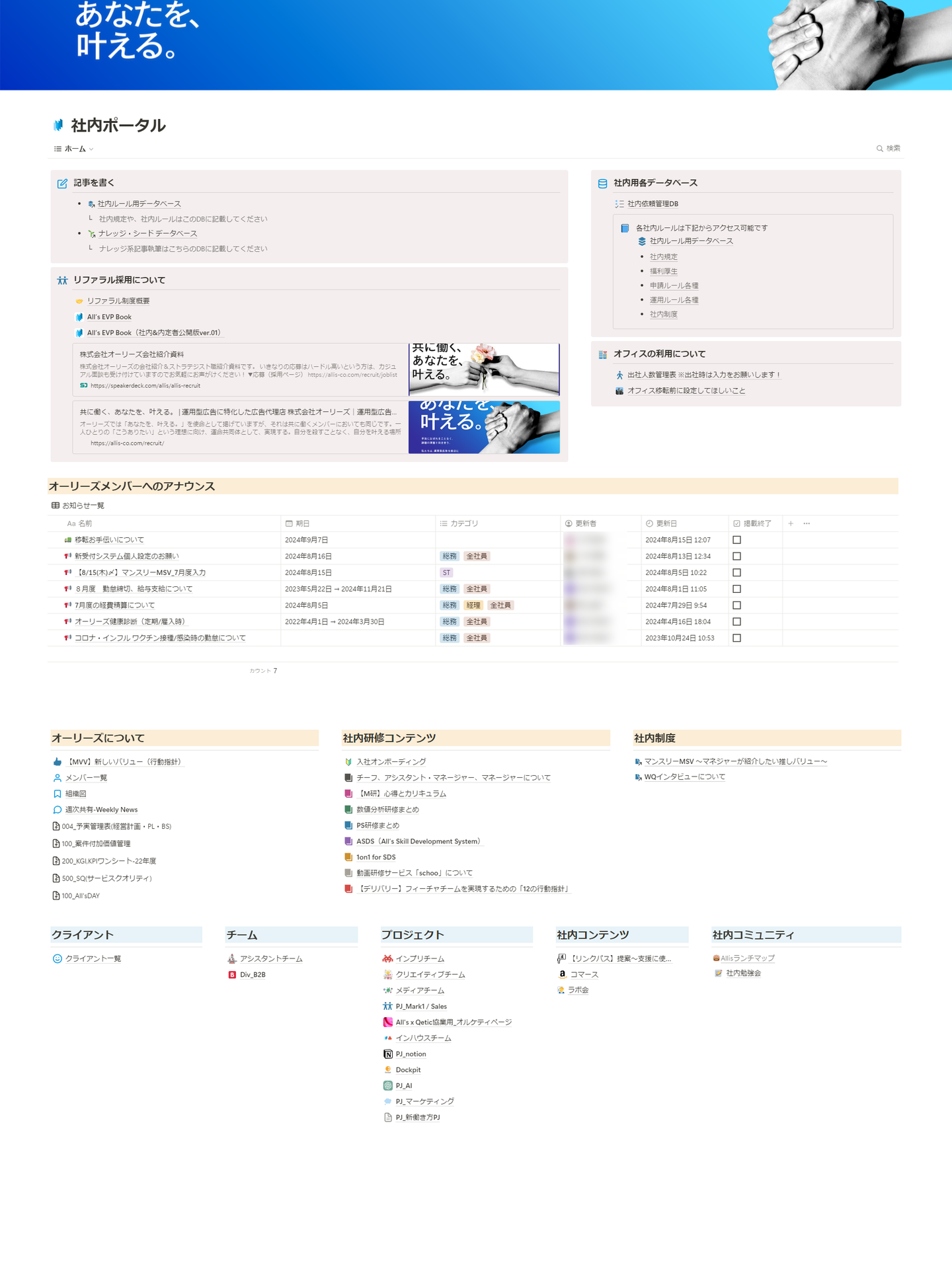 すると「すごく便利なツールだな」とだんだんと興味が湧いてきて……。Notionを使ったら他にどんなことができるのか、個人的にもNotionの便利機能や活用事例の情報収集を始めました。そんな中、たまたま見つけたのが「Notionで社内ポータルサイトを作った」という企業の事例。それを見て「オーリーズでも社内ルールをNotionにまとめたら便利なんじゃないか」と思いついたんです。それで、足立さんに「これやりたいです」と直談判。快く許可をもらって社内ポータルサイトづくりが始まりました。