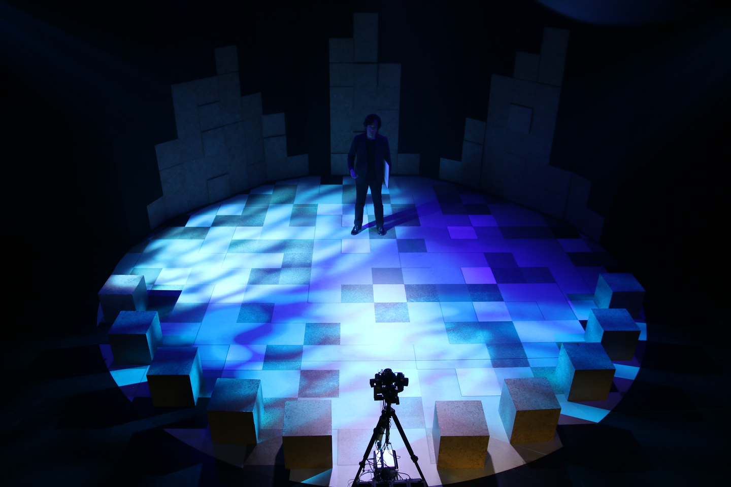 暗幕の中、たったひとりで演じる広田さんの様子