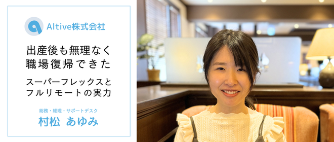Altiveは、全メンバーが「フルリモート」かつ「スーパーフレックスタイム制」を使って働いています。家族の様々な用事や買い出し、体調を鑑みた働き方を選択できます。