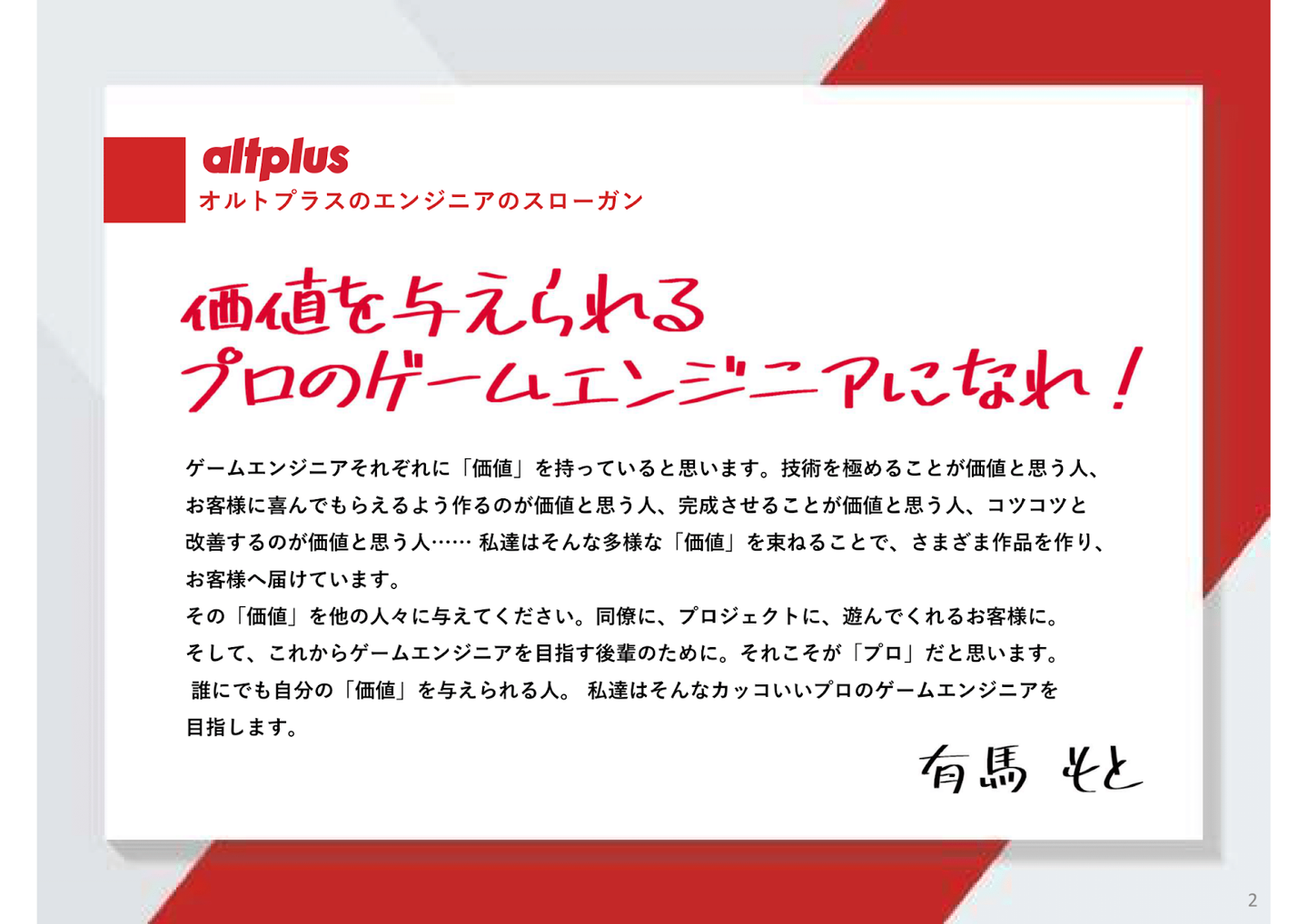 ゲームエンジニアというのは子供たちの憧れの職業にもランクインするような、カッコいい職業のはずなんです。そのエンジニアが多くの人々に価値を与えることができると、さらにカッコいいですよね。それはもう何かのヒーローだと思います。このスローガンには、そんな想いを込めています。