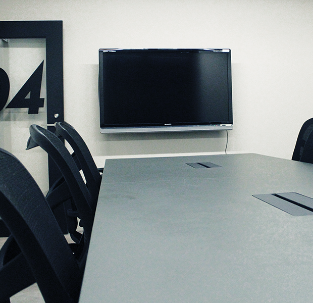 ▲大きな会議室では大型モニターを使用しながらのミーティングも。