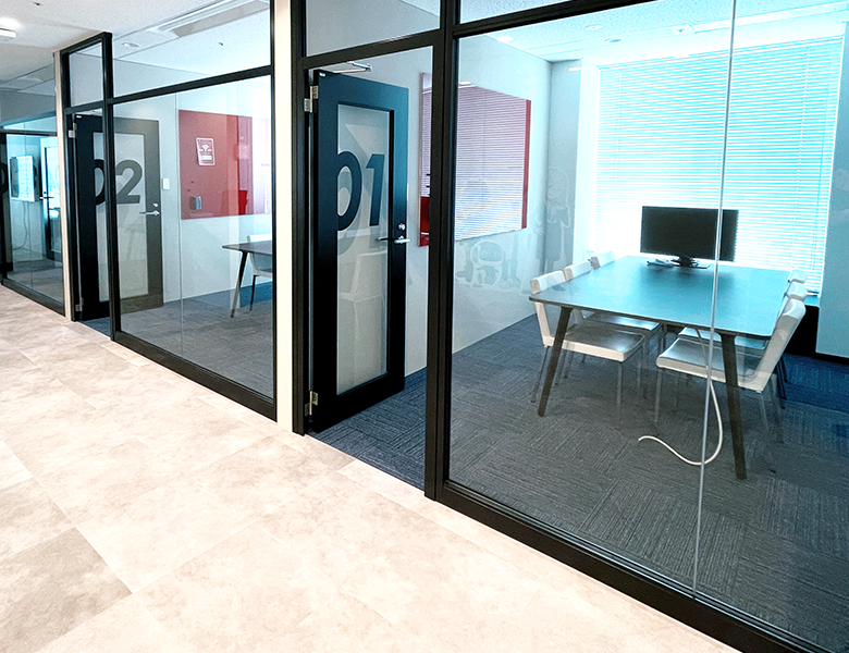 ▲大・小4つの会議室はガラスを使用して、おしゃれな感じです。