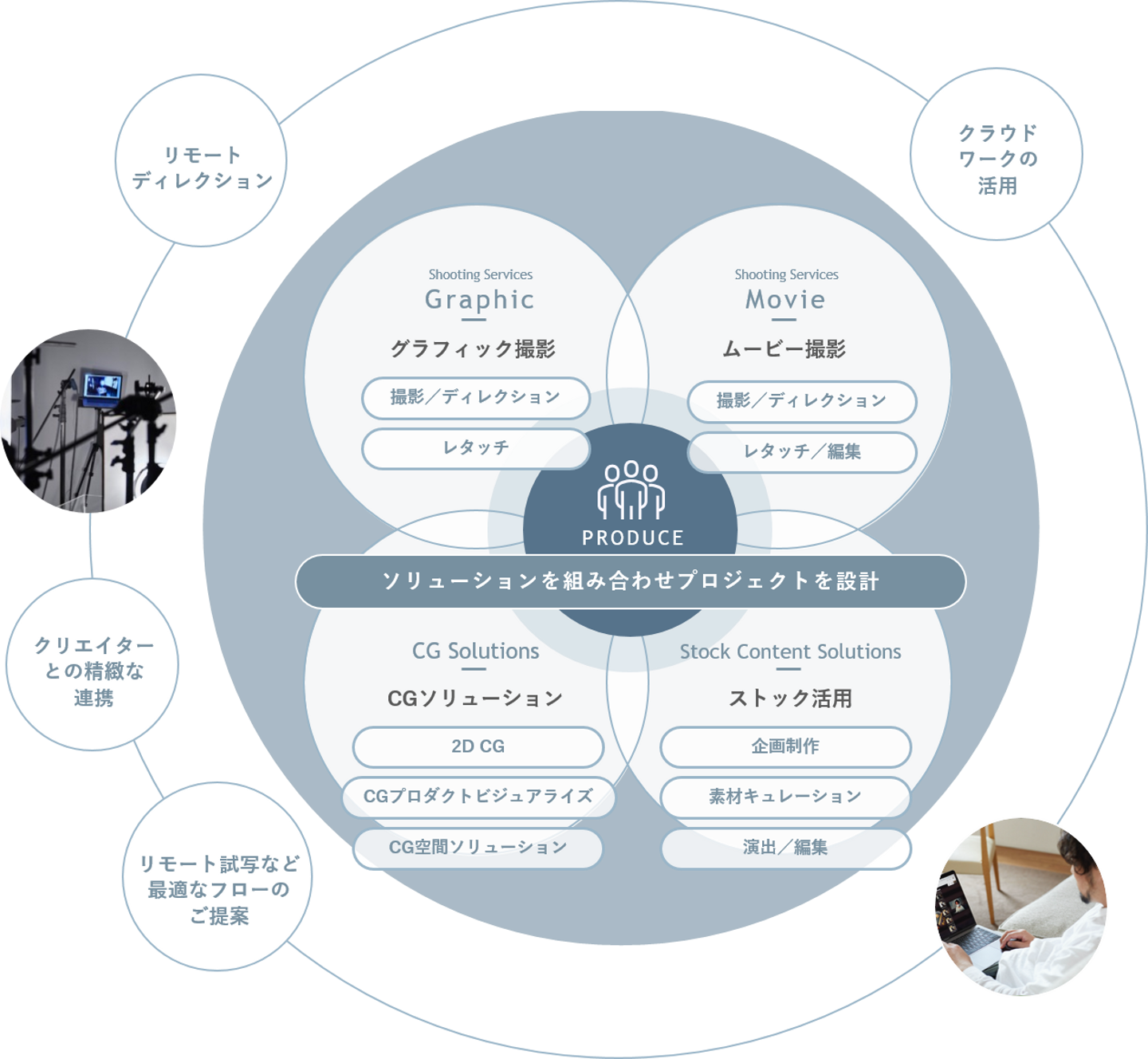 アマナは、企業やブランドのさまざまな要望や課題を解決するビジュアルコミュニケーションパートナーです。