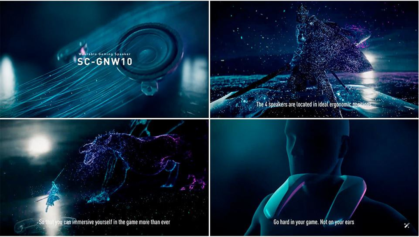 2023年11月17日、パナソニック エンターテイメント&コミュニケーションからゲーミングネックスピーカー「SC-GNW10」が発売されました。独自のデジタル処理とゲームサウンドに最適なチューニングにより、4つのスピーカーがオブジェクトの位置や移動をクリアに再現。立体的で奥行きのある、真のゲーミングサラウンドを楽しむことができるスピーカーです。アマナは、「SC-GNW10」のプロダクトCGとムービーを制作しました。