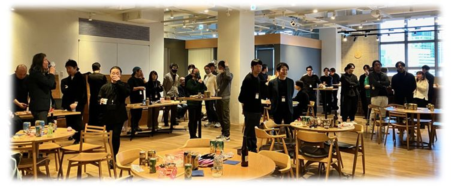 1月6日、共に力強く新年のスタートを切るべく、マネージャー層一同がオフィスのカフェスペースに集まり、年始会のひとときを過ごしました!(なんだか黒ずくめ集団です...)
