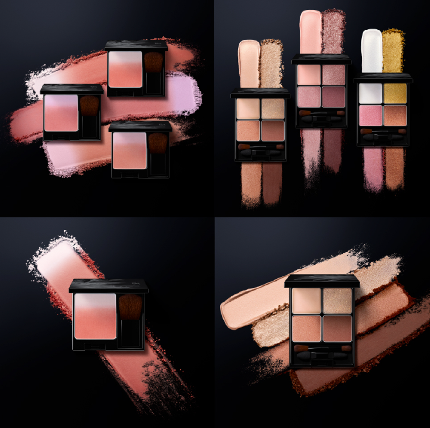 「B.A メーク」のキービジュアルでは、商品のカラーバリエーションを最大限に活かし、洗練されたスタイリッシュさを表現。背景にはグレーから黒のトーンを採用し、B.Aらしい美しいフォルムと発色の良さを強調。配置にも細心の注意を払い、プロダクトの天面デザインを強調し、思わず手に取りたくなる印象に仕上げました。