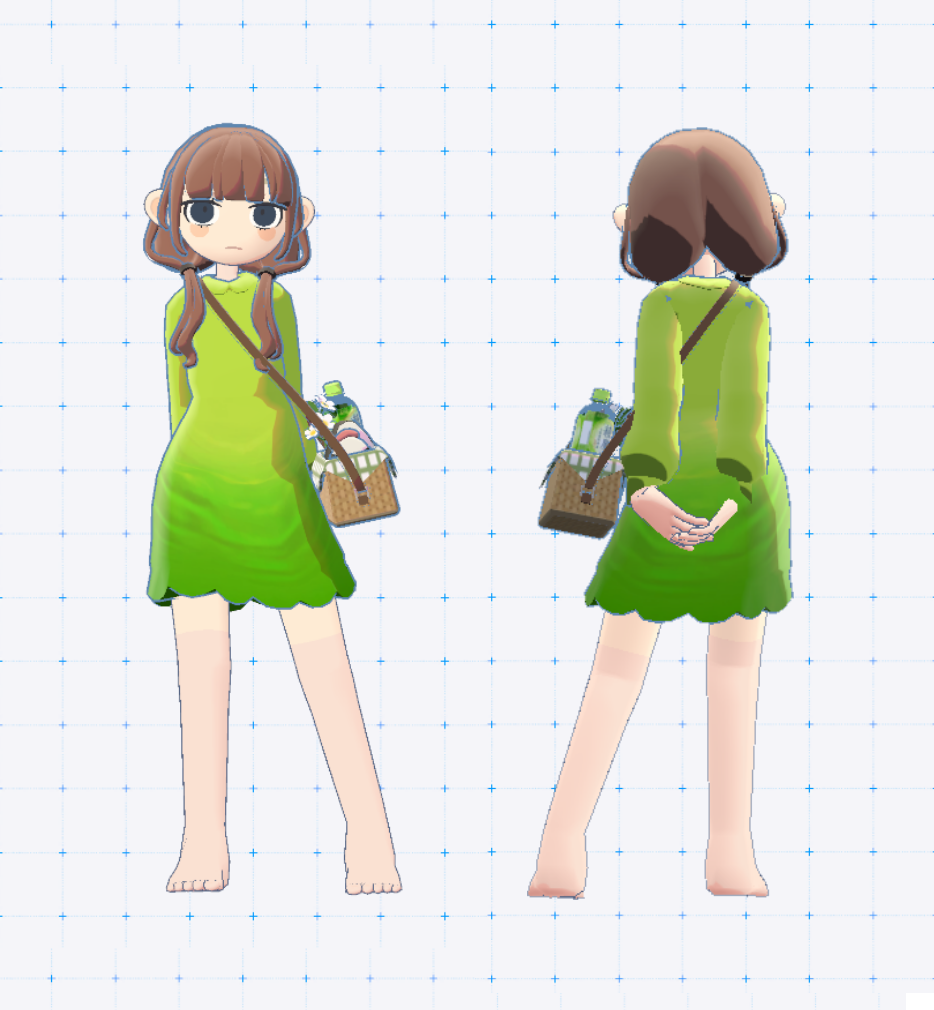 綾鷹カラーの「ワンピース」と、肩がけのお出かけ「バスケット」が登場。ユーザーは自身のアバターに自由に着せることができます。