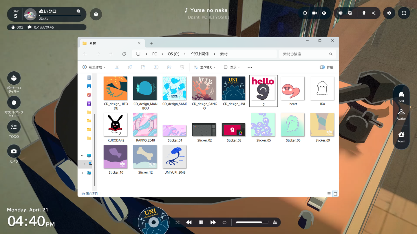 部屋づくり配信、アバターキャラクリ配信、作業配信などぜひ自由にご利用ください。