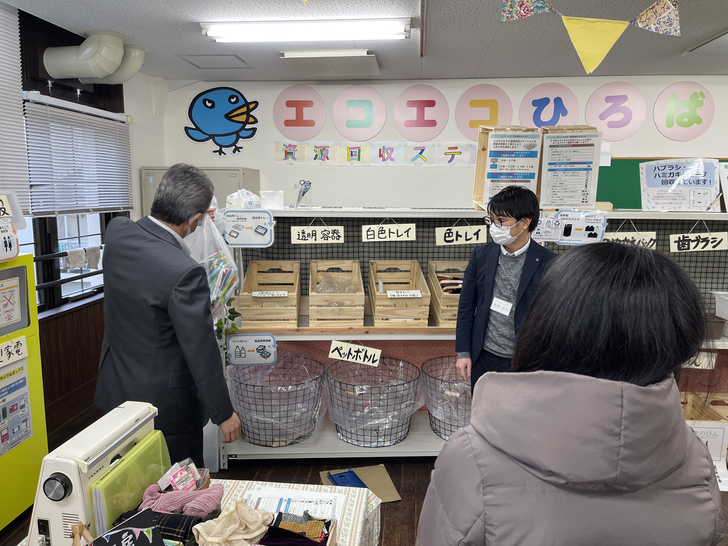 ↑代表の佐藤がふたば学舎での資源回収の様子を説明しています。