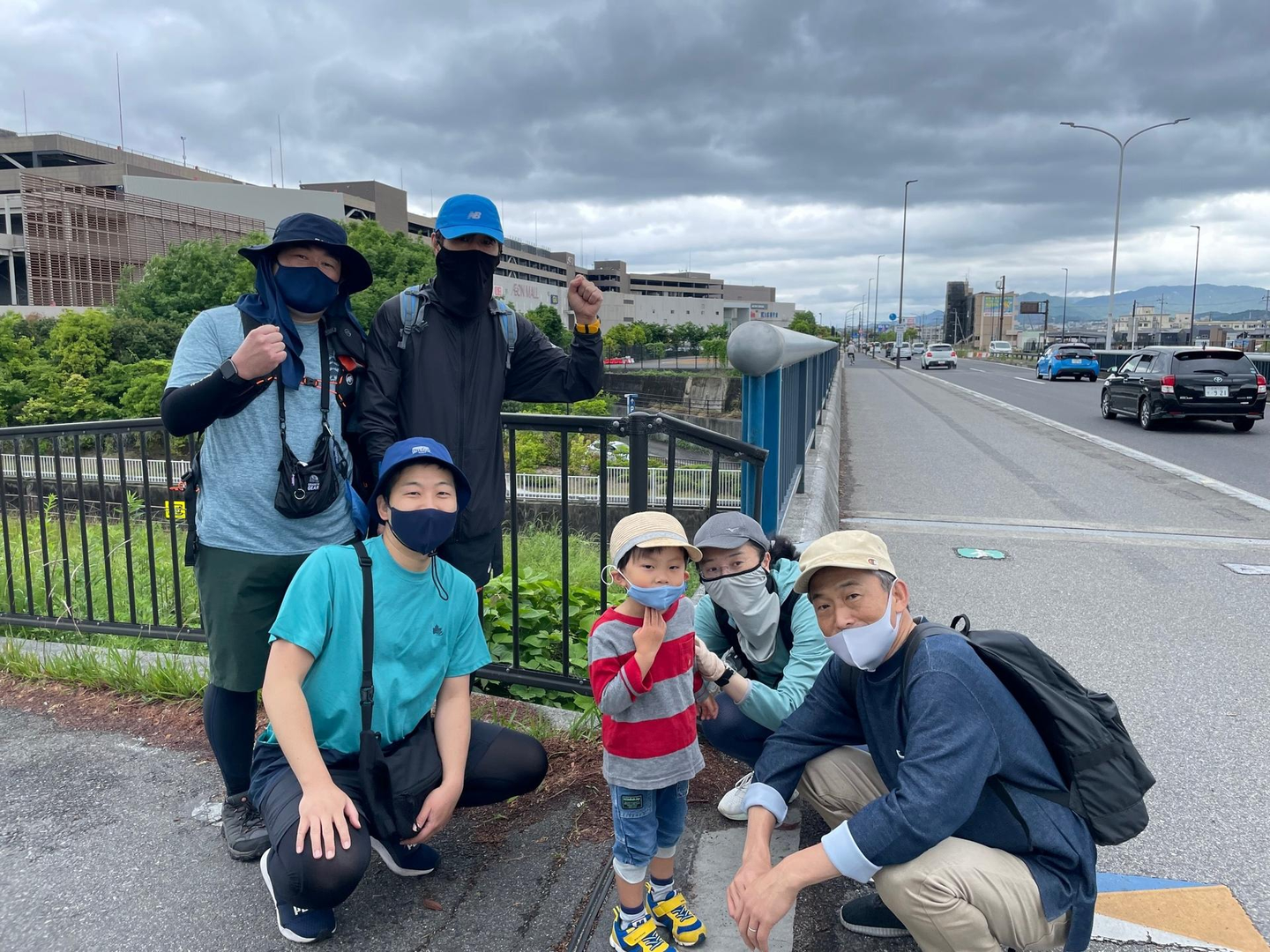 ↑ 約10km地点のチェックポイントにて。沿道への応援に駆け付けた社員のお子さんと記念撮影。