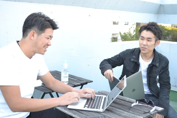 屋上で会議もやります!開放的な気分になるので、斬新な意見が飛び出します!