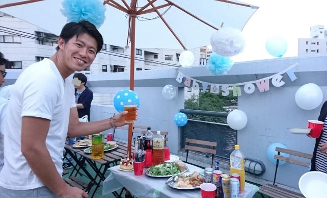 CSの川津りなさんが産休に入る前のベビーシャワーパーティーも屋上で!!ボンボンと風船の飾りつけかわいい~。