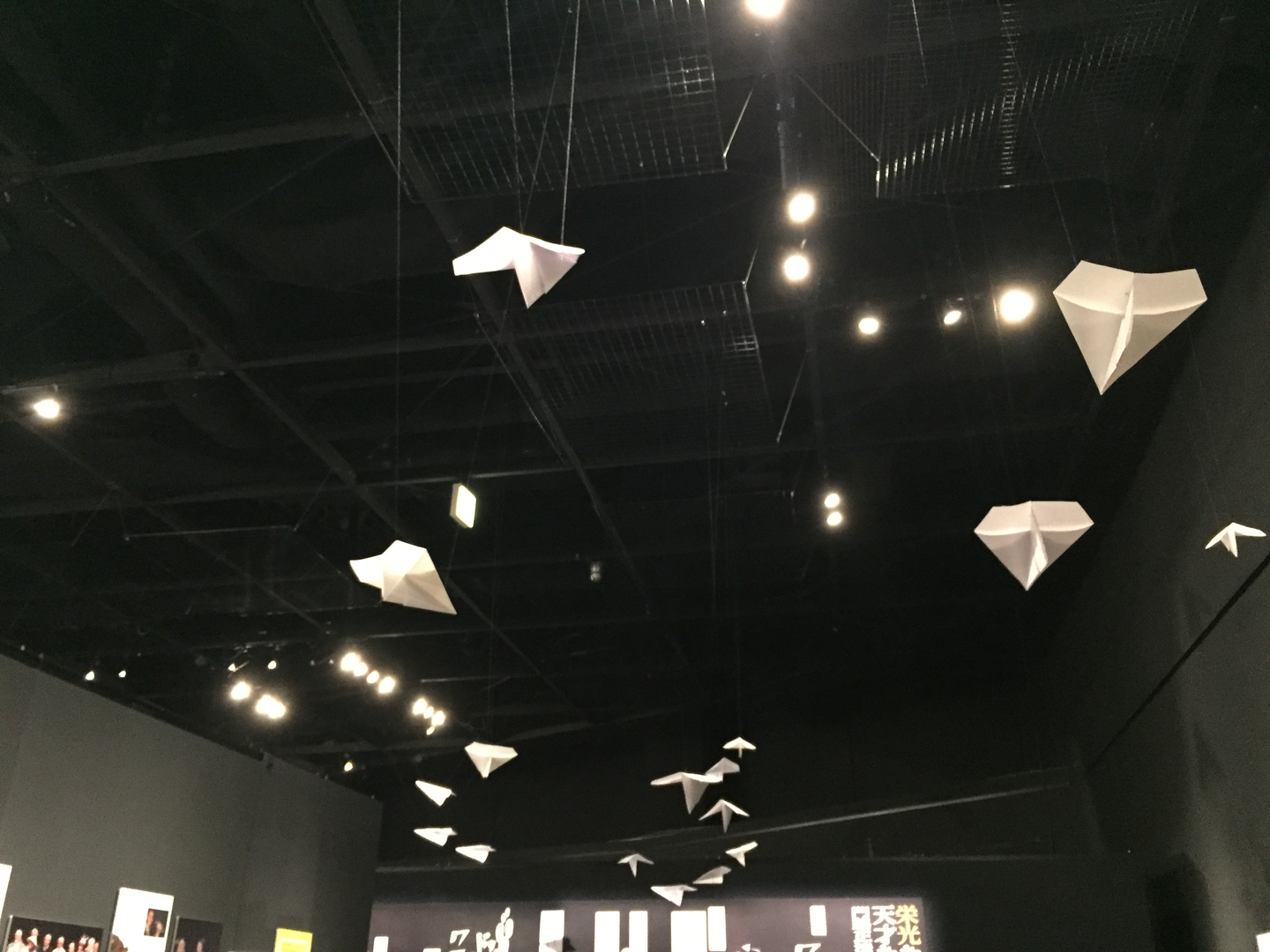 天井には、イグノーベル賞の授賞式で、受賞者に向かって投げこまれる紙飛行機が吊るされているのも、この展示会の見どころの1つです。