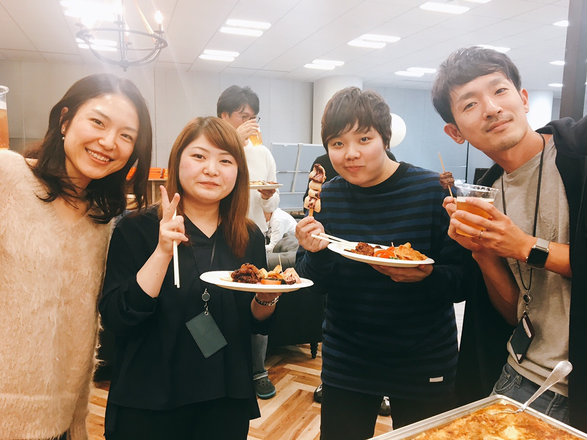 月1で行う締め会の他に、毎週金曜日の夜19時~行っているハッピーフライデーがあります。誰でもお料理とドリンクを楽しみながら交流ができます。会社の雰囲気を見たい方も毎週たくさんお越しいただいています!