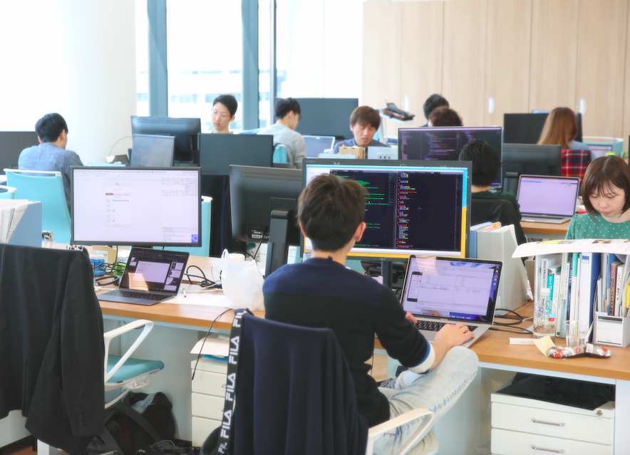 各プロジェクトやUnitごとにシマ(島型対向式レイアウト、とも言うようです🤔)を作ってます。日々の業務で、必要な時に必要なコミュニケーションがすぐに取れる環境となっています。