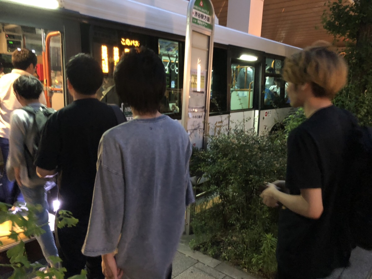 ボウリング部メンバーは、決してタクシーなど使うことなくバスと電車を乗り継いで決戦の地へ向かいます。