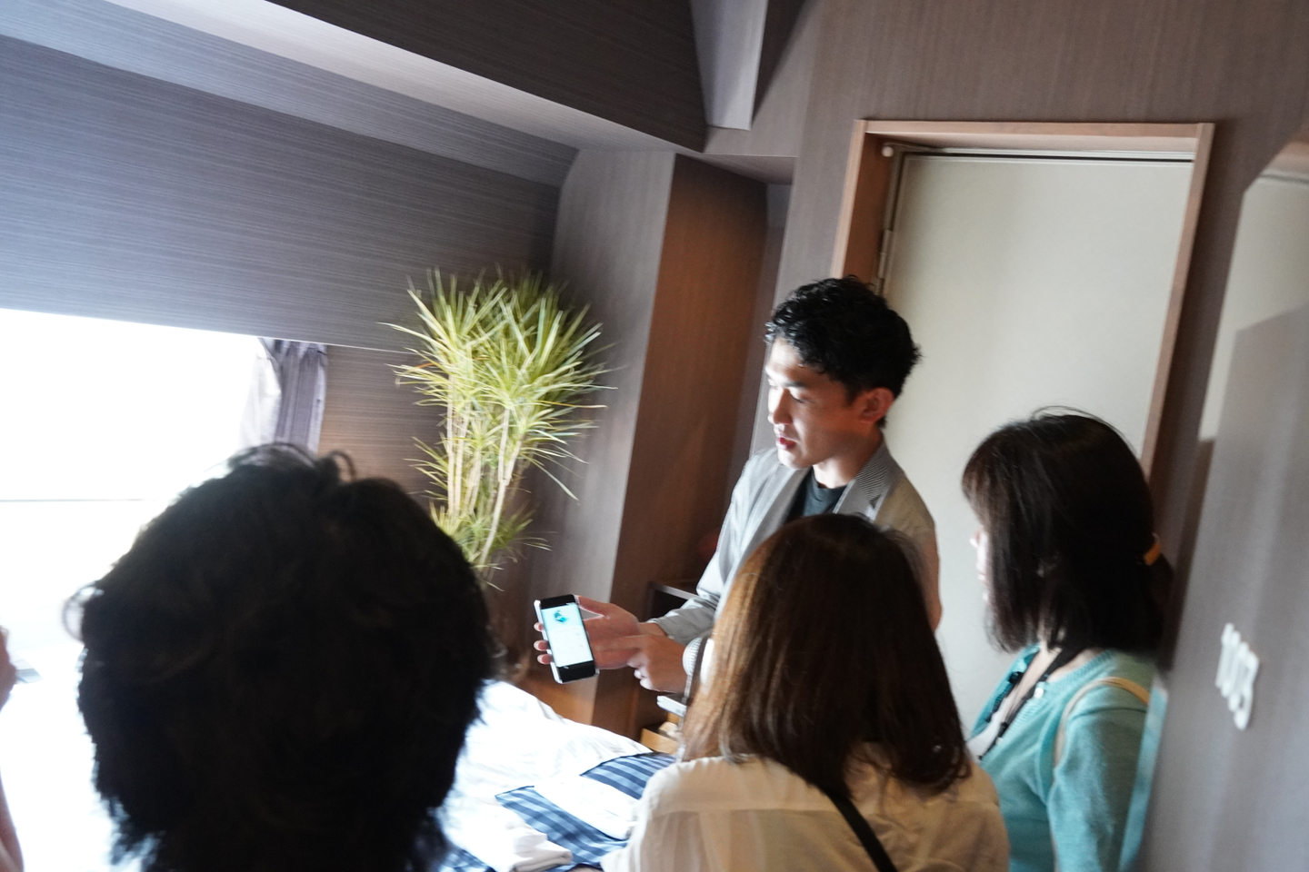 当日は取締役の梅本より事業の説明をさせていただいた後、実際にIoTラグジュアリールームなど施設内をご覧いただきました。