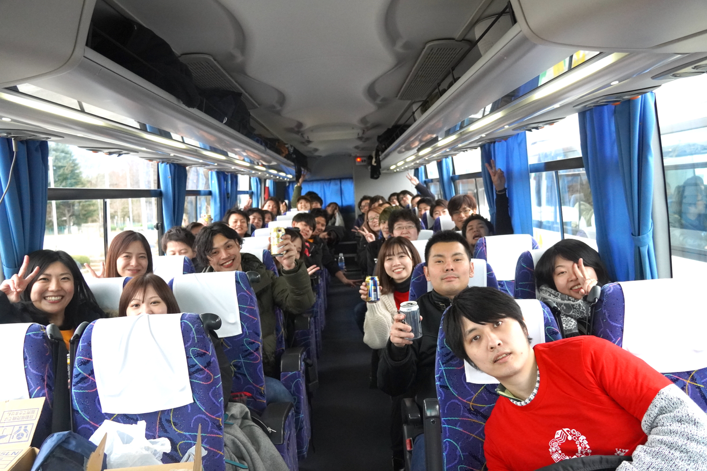 朝8:30に会社前に集合して、みんなでバスで出発。