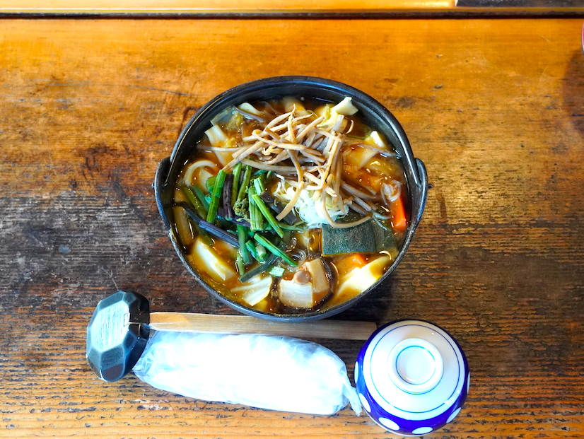 山梨の郷土料理の野菜たっぷり入ったほうとうをいただきました。