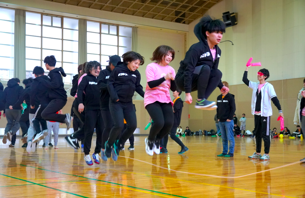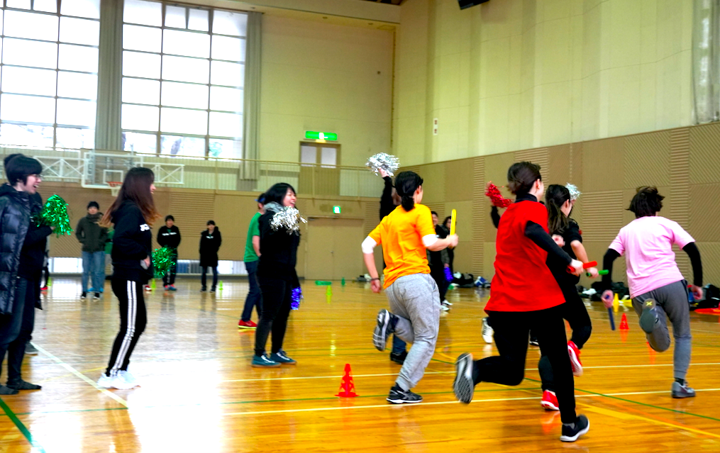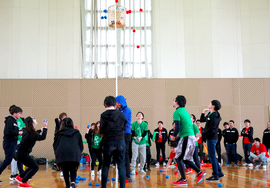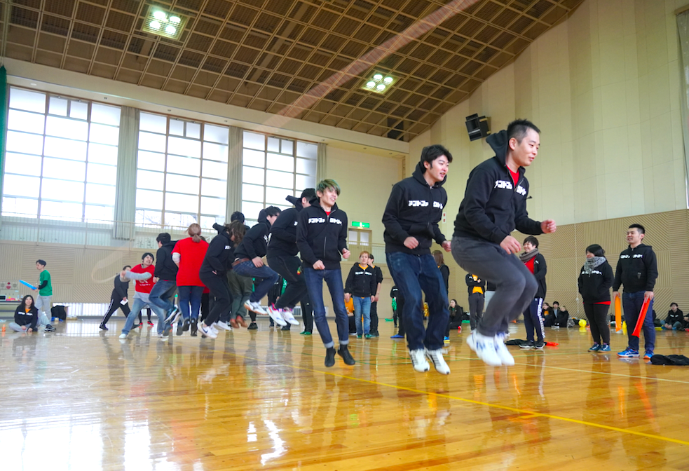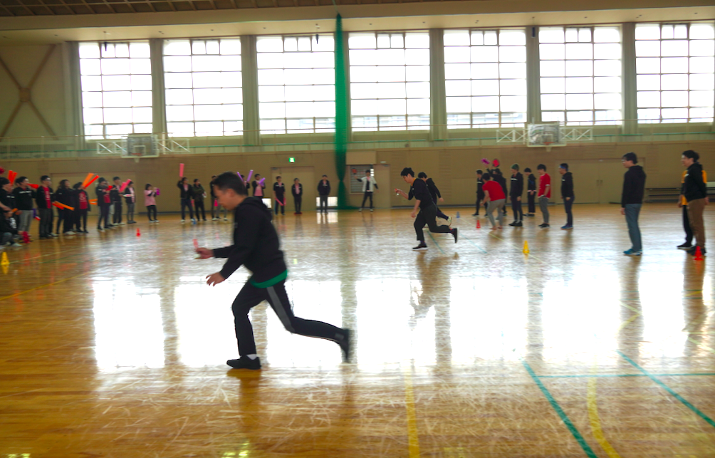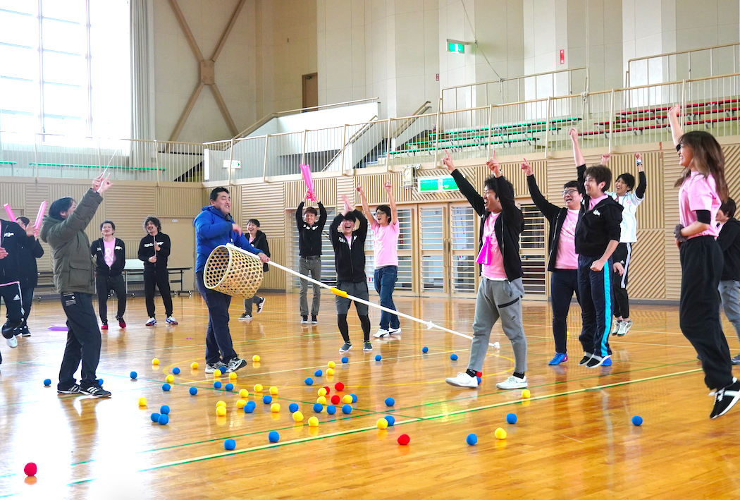 美味しいほうとうをいただいたあとは、みんなで体育館へ移動!