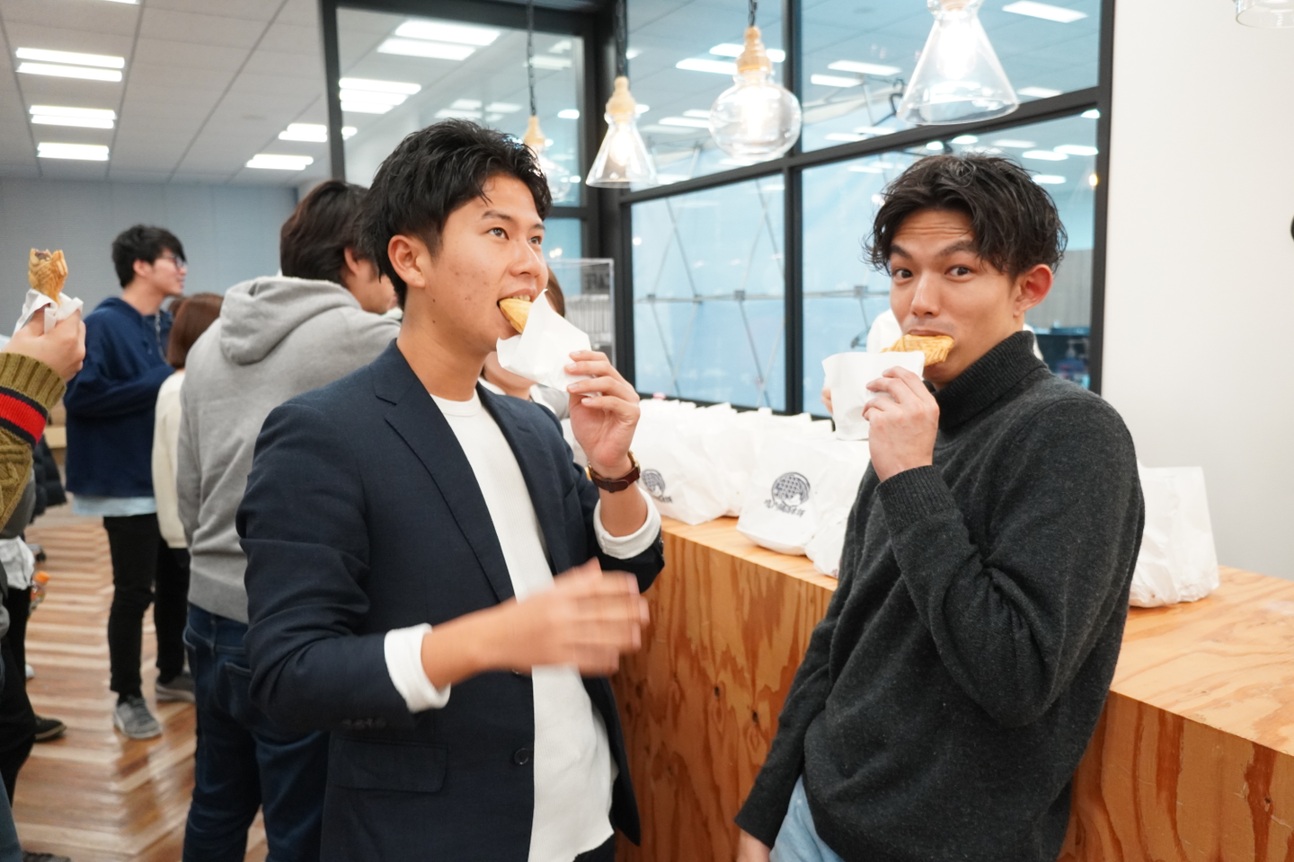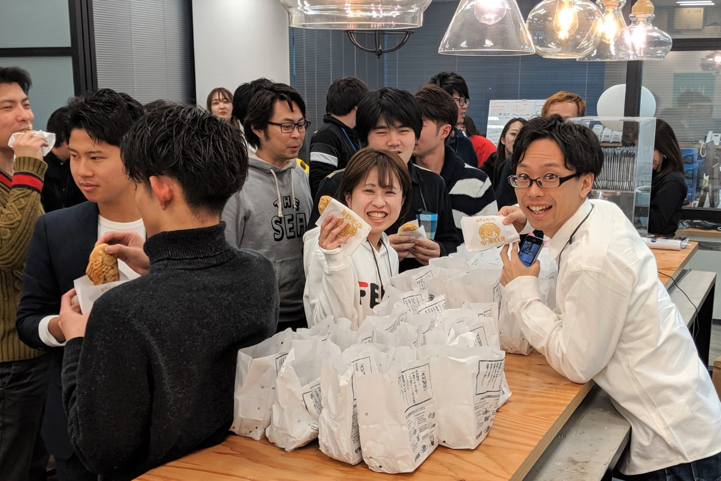 ちょうど小腹がすいた午後、温かくて甘~い会社からのプレゼントにみんな大喜び!