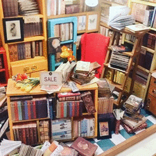 オーダーメイドの棚の上にあるのは「DIY house」というミニチュアハウスで、週末に少しずつ作っているんだそう。本の中もちゃんとページがあります。電球も電気がついたり本格的なミニチュアハウスです。