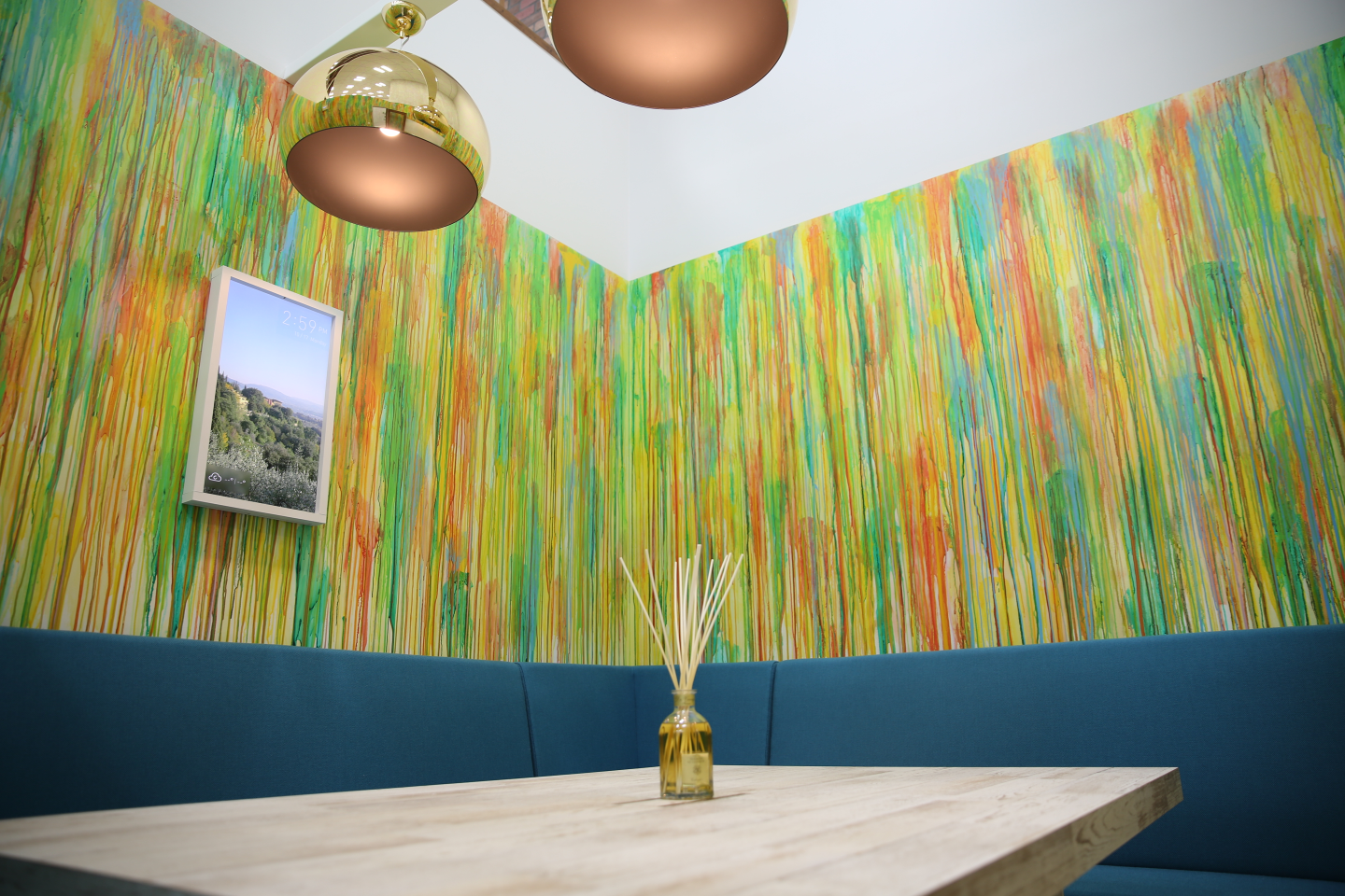 ・照明の色、天高、香りもそれぞれ異なっている
