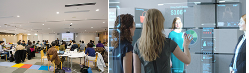 会場となったINFORIUM豊洲イノベーションセンターは、【共創で未来を拓く】をコンセプトとしたNTTデータ社内に設置されたCo-Creation Spaceです。イベントが開催された「Innovation Lab」というフレキシブルなカンファレンスルームの他に、デモ展示エリアでは、NTTデータ様の最新技術のデモンストレーションなどが展示されていました。