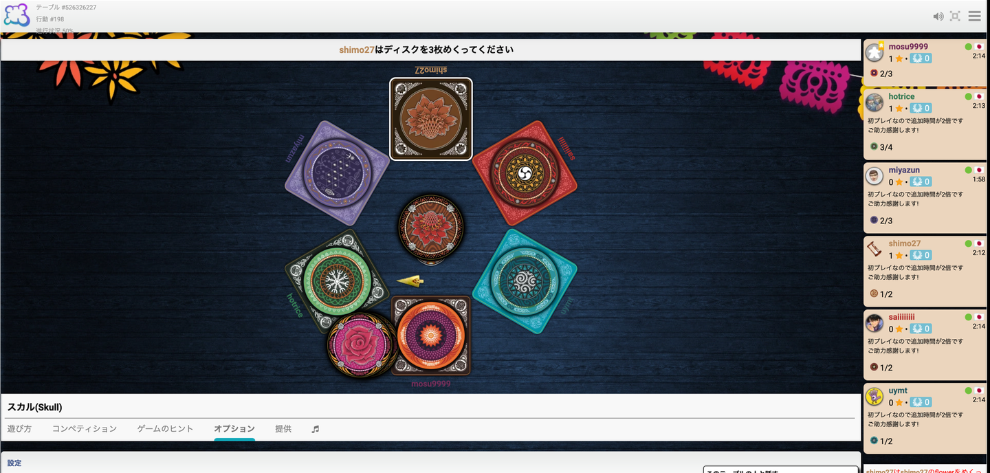 そして今回のメインゲームとして「スカル」というゲームをプレイします。