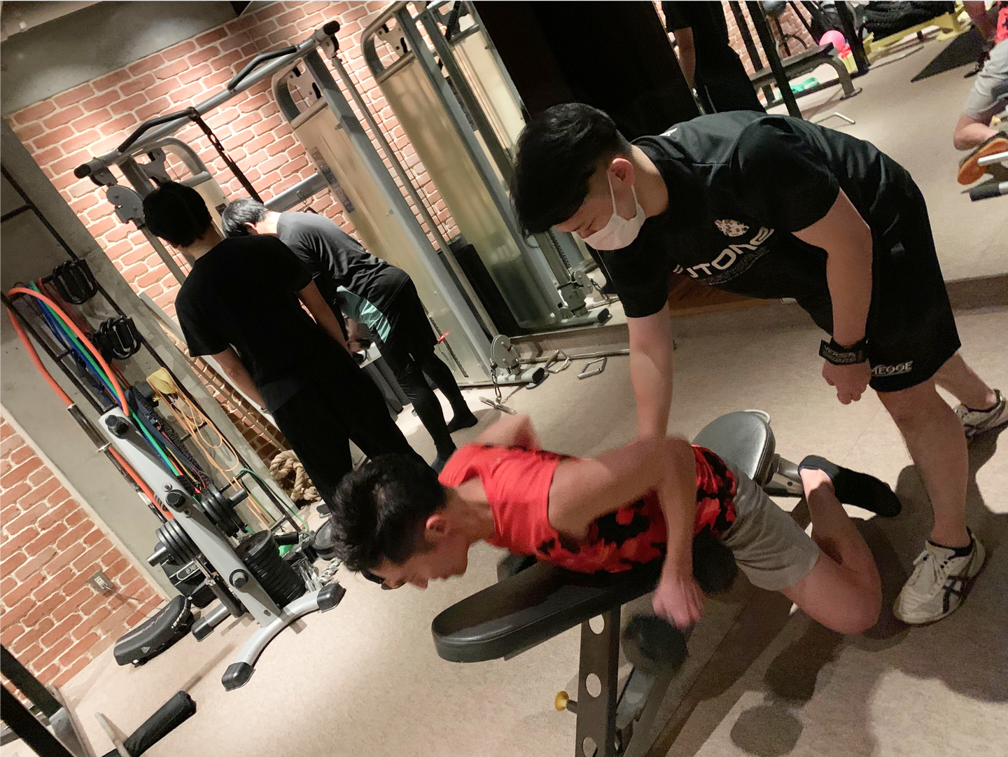別の組を見てみると先輩トレーナーが背中トレーニングのレクチャーをしていました。新しいトレーニングで普段とは別の角度からの刺激を得られたり、フォームを客観視してもらえたり、最後までしっかり粘れたりと合トレは良いことずくめですね!