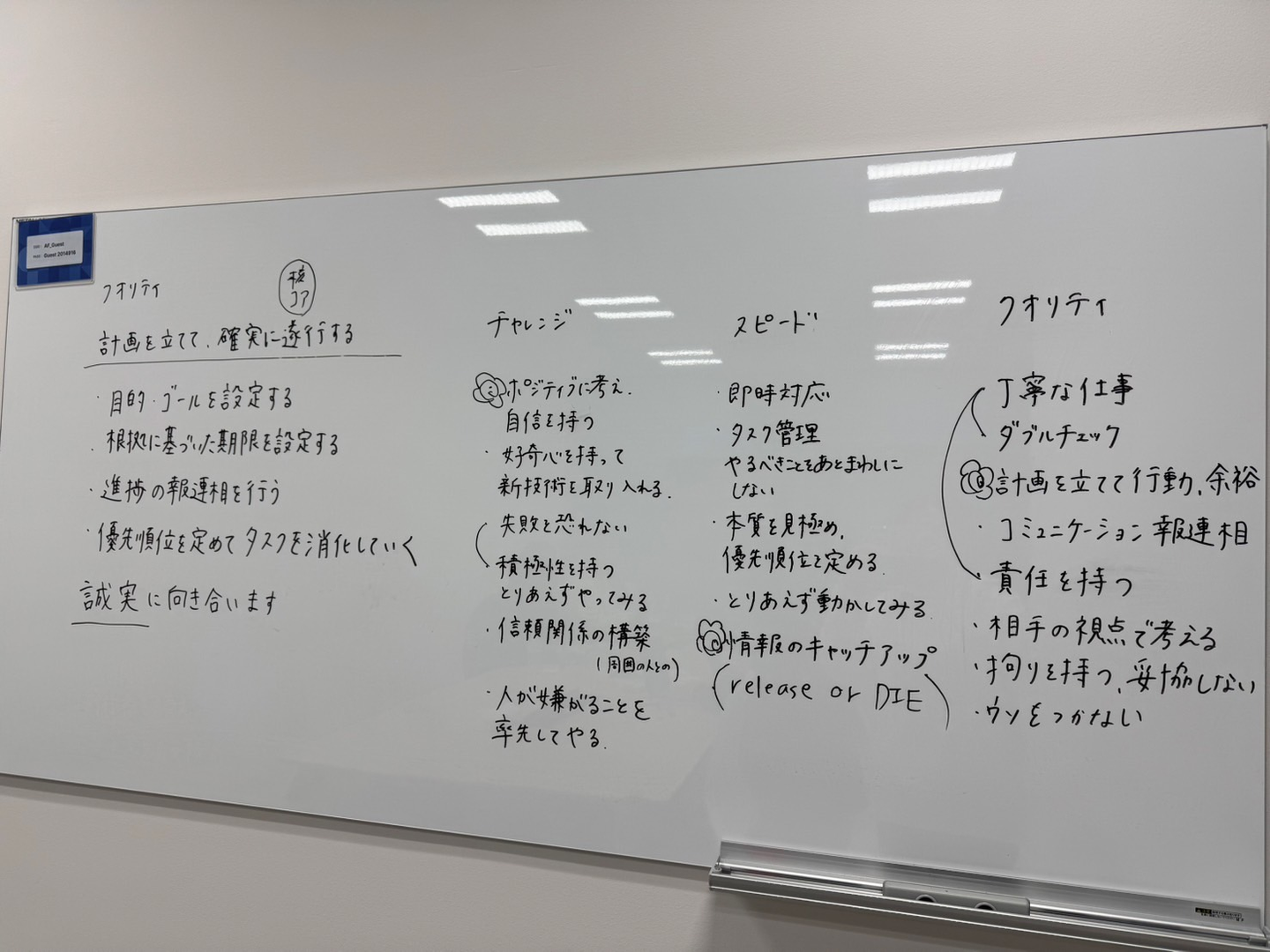 この4日間を通して、新卒メンバーたちはコアバリューを単に「理解」するのではなく、「共に働く仲間と対話し、自分の中に取り込む」経験を重ねてきました。