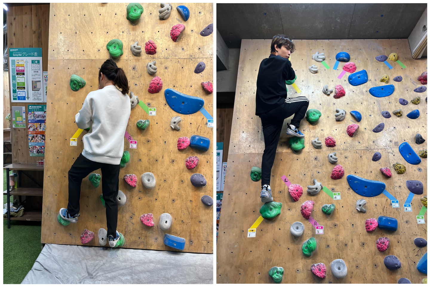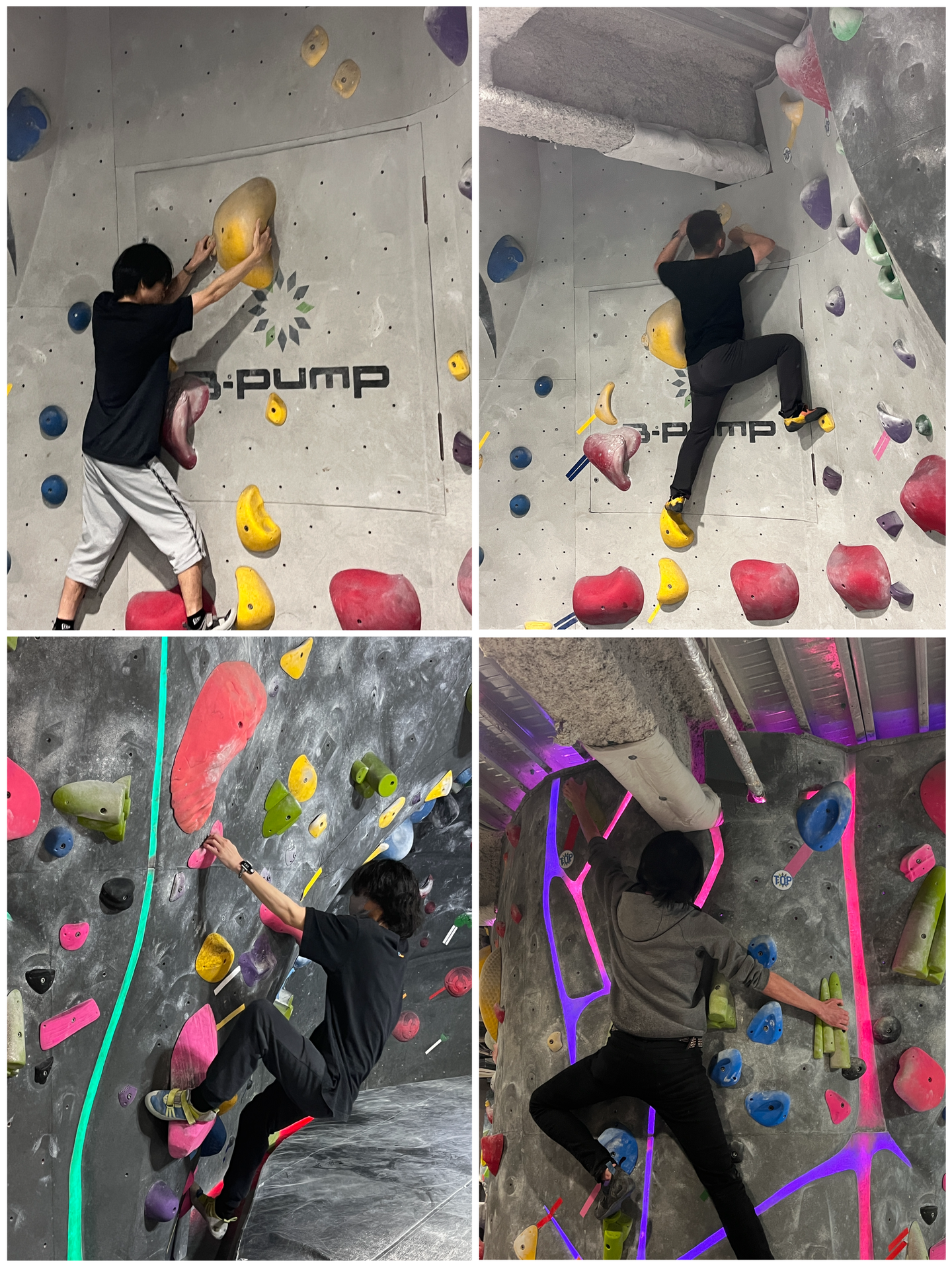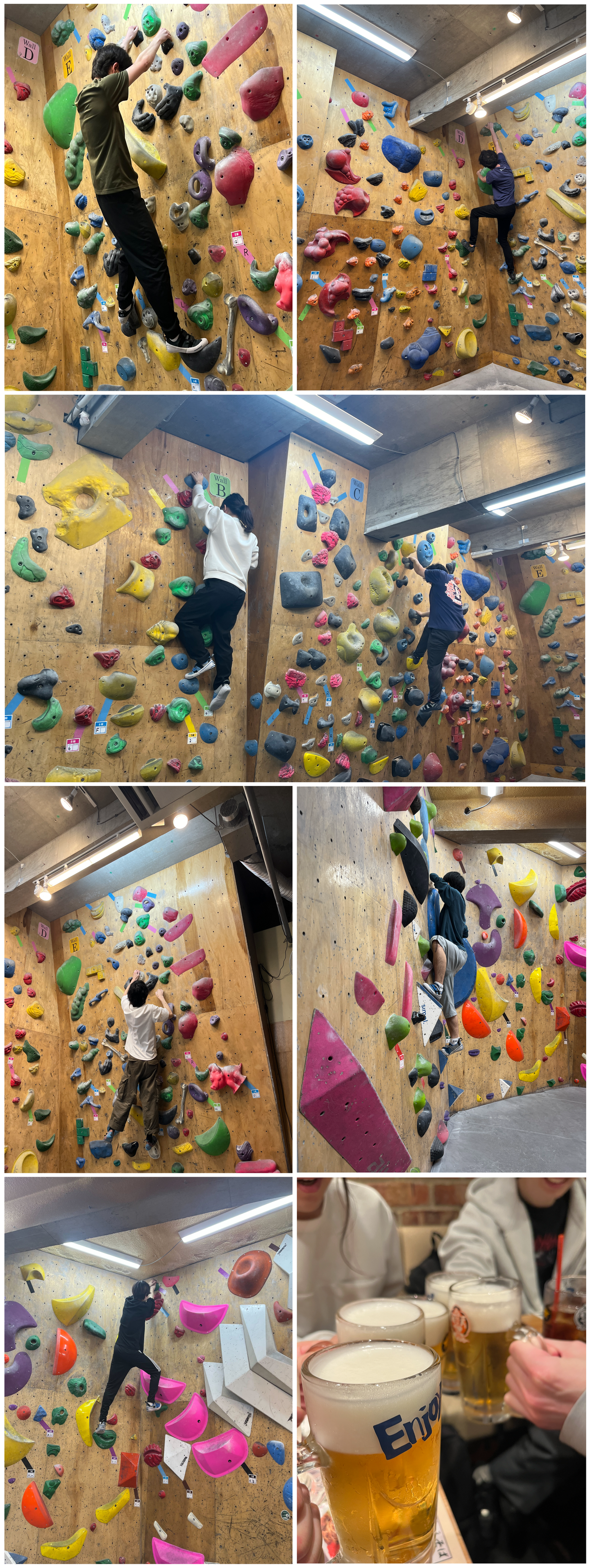 新入社員の松ヶ浦くん、青木くんともに最初の課題を軽々クリア!初めての完登を見届けて他の皆も続々登りはじめます。