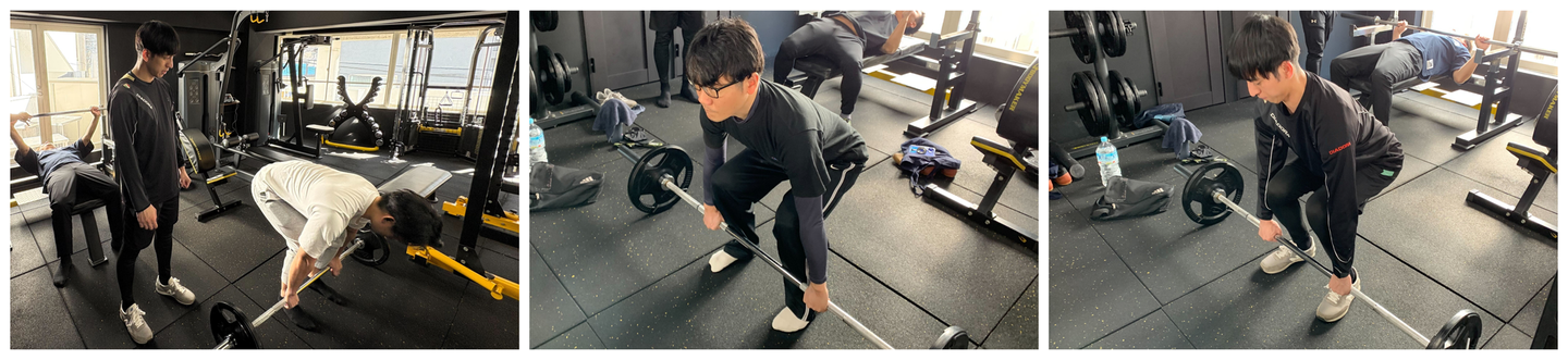 スタートポジションはうまく取れるのですが、バーベルを持ち上げていくところで苦戦していました。軽い重量で練習して動作に慣れていきましょう。