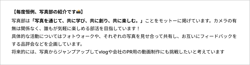 新卒の子たちも入社したので、部員が増えてより賑やかになればうれしいなと部長は思っています笑