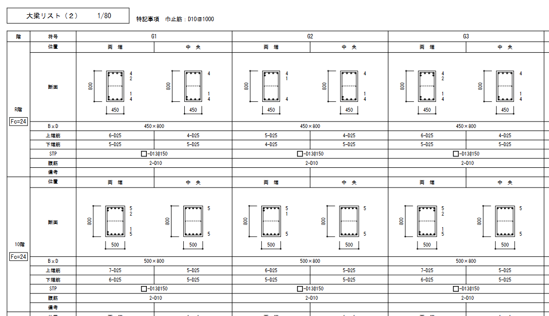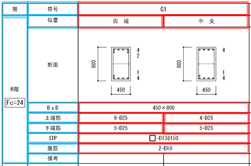 まずビル建設では鉄筋コンクリート造の建物が多く、梁や柱などの鉄筋はこちらの写真のように位置、構造、材質、断面図などの情報が配筋図という建築図面にまとめられています。