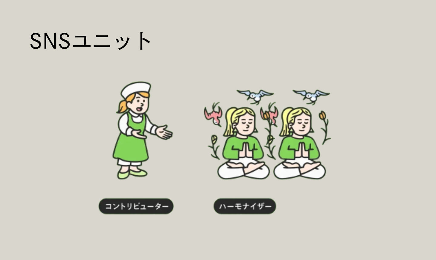 SNSユニットは、コントリビューター(献身者)×ハーモナイザー(調和者)で構成された、