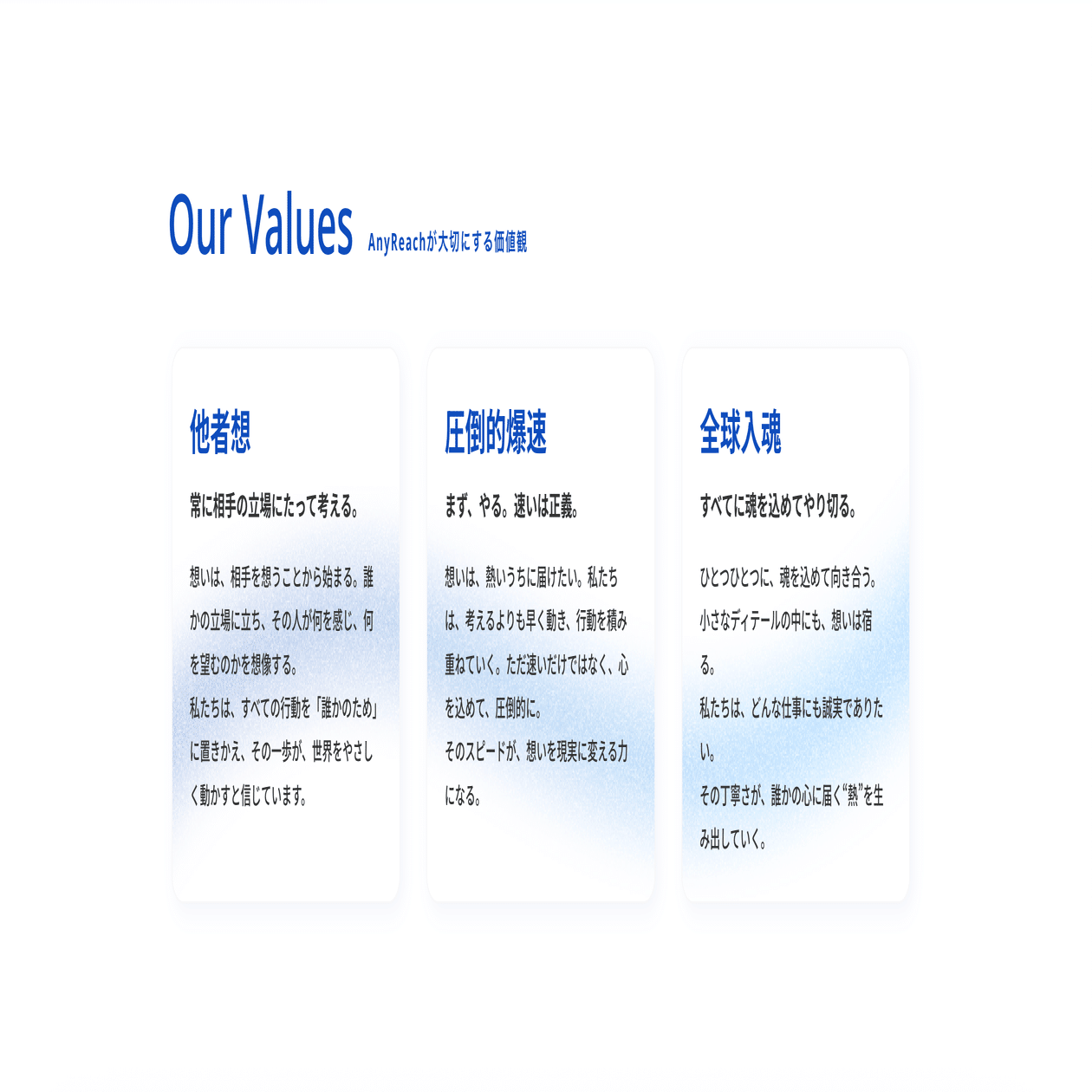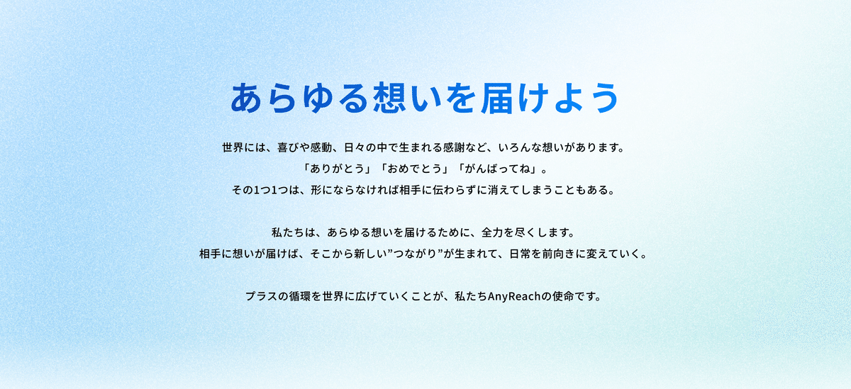 プラスの循環を世界に広げていくことが、私たちAnyReachの使命です。