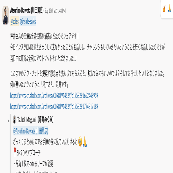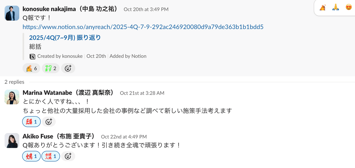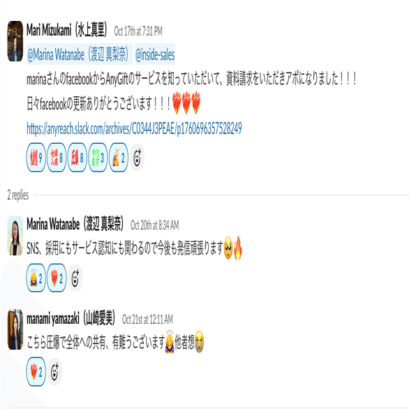 通称「圧爆(アツバク)」。AnyReachはまだまだスタートアップであり、競合が多く、移り変わりが激しい市場の中で、意思決定と実行スピードを上げることが競合優位性にもなる。ただ早いだけではなく、圧倒的な速さであることが重要